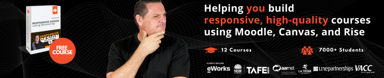 Learn how to create responsive web based content for your LMS. Especially for the Moodle LMS but will soon include courses on the Canvas LMS and Articulate Rise.